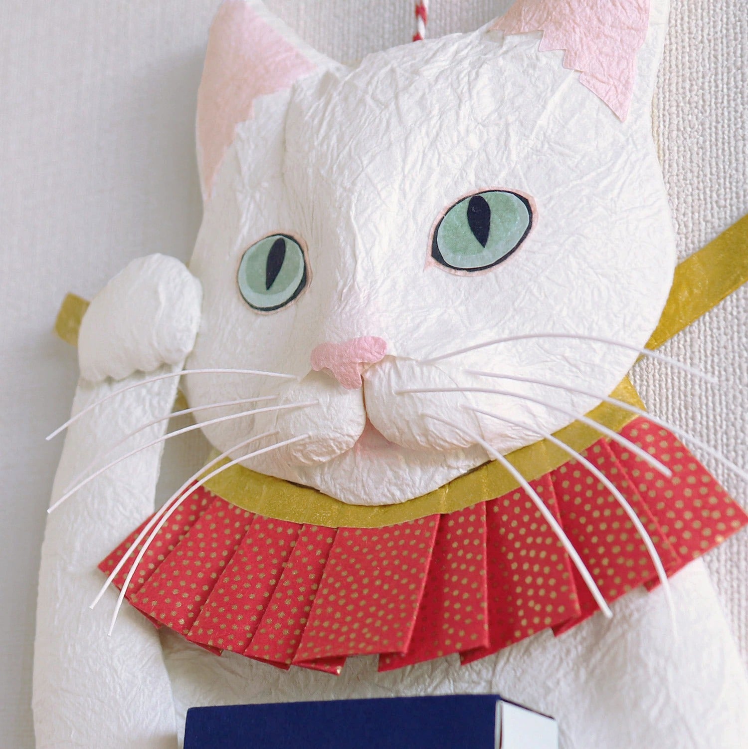 招き猫の日めくりカレンダーです。和紙の白猫が新たな一年を見つめ、福を招きます。猫は押し絵です。ふっくらと綿をつめ、立体的でふくふくとした作りです。赤い前掛けは取り外し可能です。日めくりには、大安・先負などの「六曜」や旧暦の日付、行事、生活の教訓などが入っています。一日一枚カレンダーをめくることで「新しい一日がスタートする」そんな気持ちにさせてくれます。