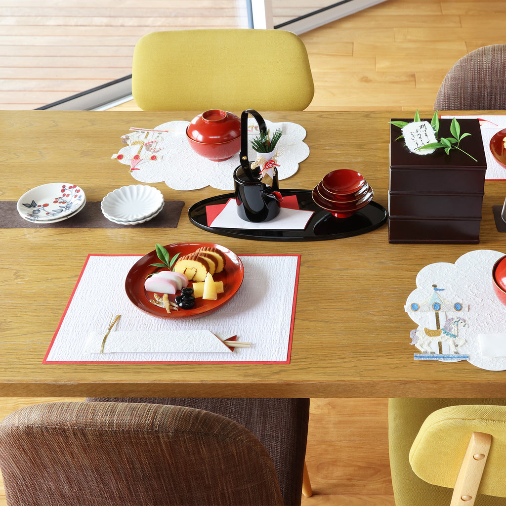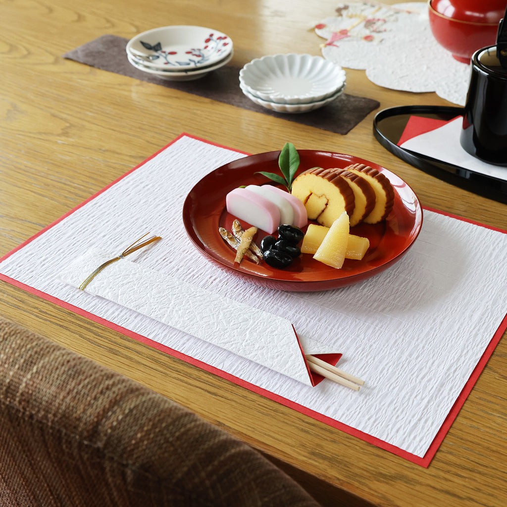 揉み紙の箸包みに、金銀の水引を結んだシンプルで品のある祝箸。箸包みの内側に紅をさし、さりげなく華やかな印象です。祝い箸の両先端が細く削られているのは、片方は人間が使い、もう片方は歳神様が使うためといわれています。お正月はもちろん、誕生祝いや還暦のお祝い、親族やご友人と集まりなど様々な慶事にお使いいただけます。国産檜の丸箸は24.5cm・3膳入りです。※防カビ処理はおこなっておりません。また、天然木を使用しているため若干の色ムラがあることがあります。