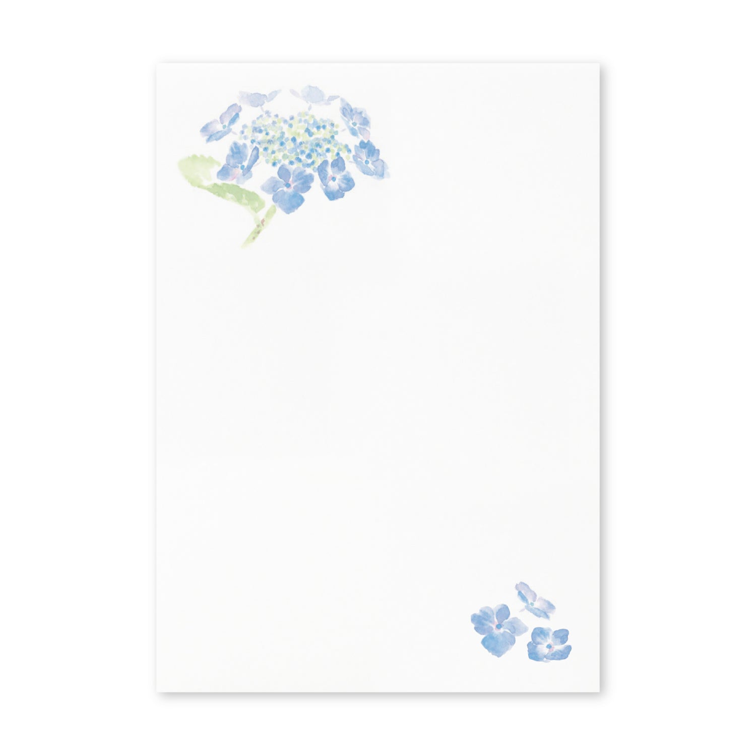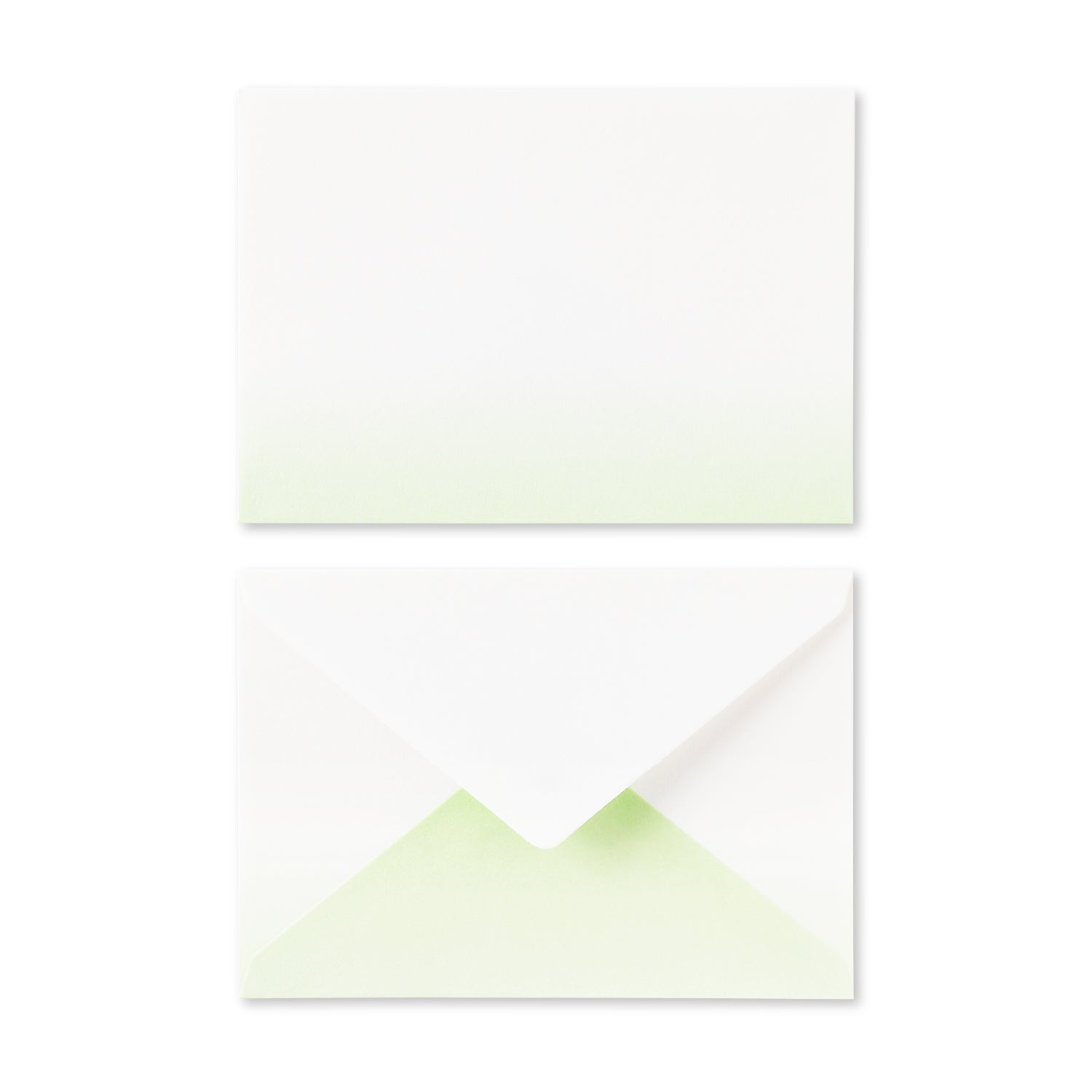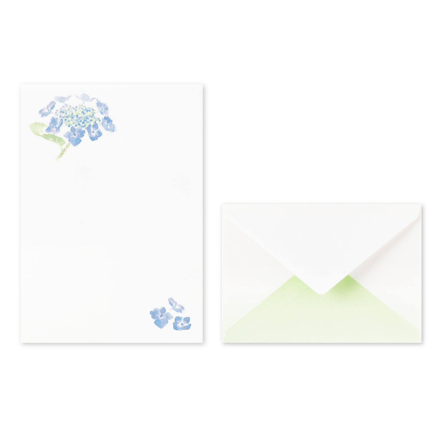 紫陽花の便箋と、薄緑色のぼかし封筒をセットにしました。