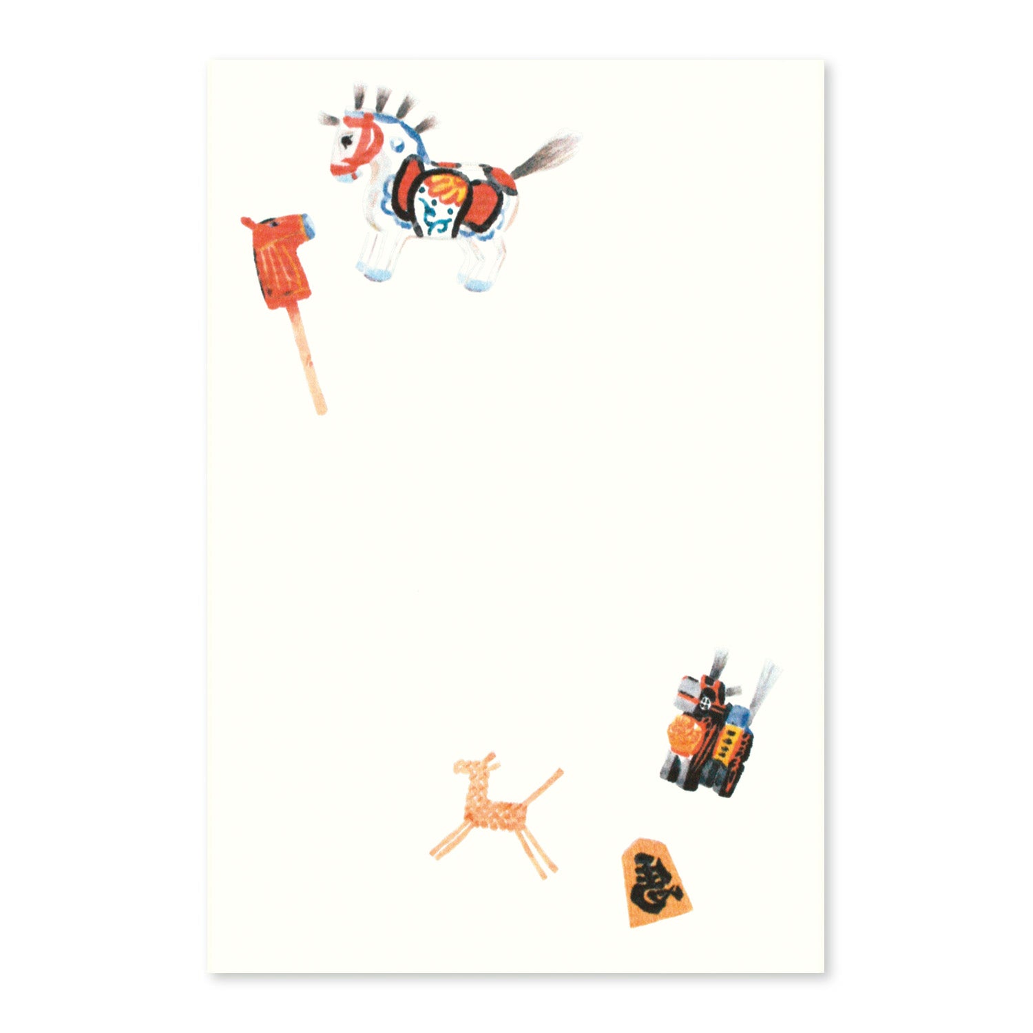 馬の郷土玩具を柔らかな水彩画で描いた、年賀はがき2枚セットです。