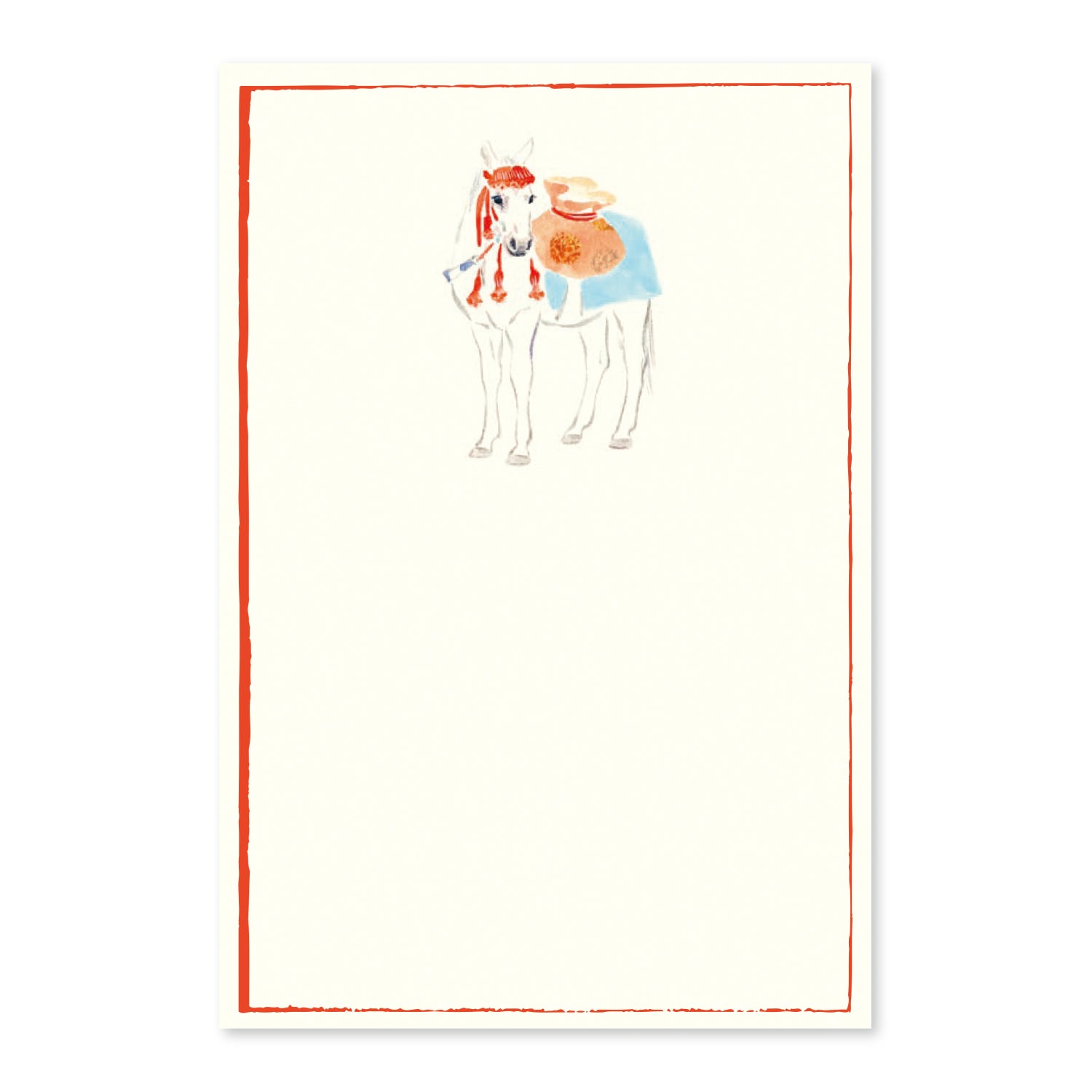 華やかに飾り立てた「神馬(じんめ)」の年賀はがき2枚セットです。