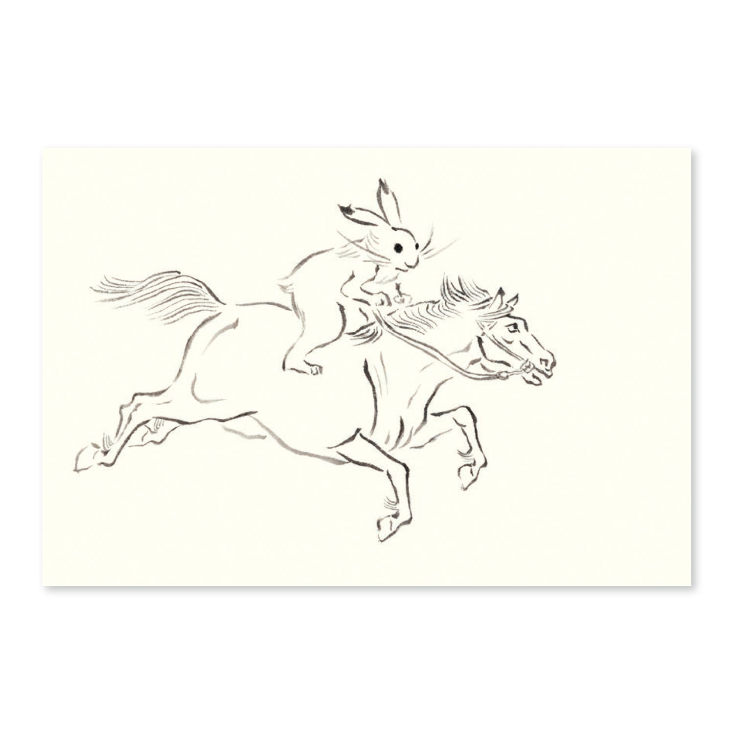 干支年賀はがき うさぎのくらべ馬 2枚入