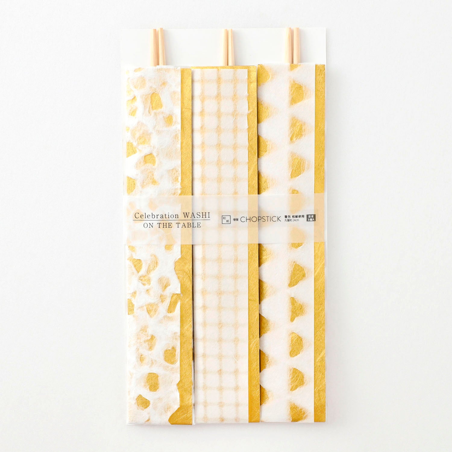 白の手漉き和紙と、金色の和紙を重ねた3膳入の祝箸です。